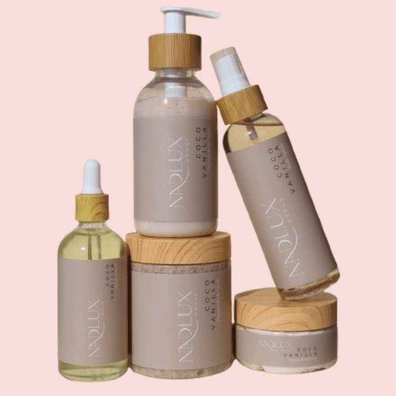 The Coco Vanilla Body Scrub gently exfoliates with finely ground walnut shells. It clears away dead cells, unclogs pores, and refreshes your skin. After exfoliation, apply the Body Oil. It nourishes with natural oils, locks in hydration, and leaves your skin soft and silky.